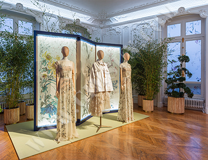 採用經(jīng)典的和紙作為展示道具和牆面裝飾,呈現(xiàn)出獨特的自然紋理和高雅的藝術(shù)質(zhì)感。和紙不但具備優(yōu)良的透光性,使燈光柔和散射,還具有優(yōu)異的隔熱性能,調(diào)節(jié)室內(nèi)溫度。其天然植物纖維材料無化學(xué)添加,符合現(xiàn)代可持續(xù)設(shè)計趨勢,體現(xiàn)對環(huán)保的承諾與責(zé)任。如此精緻的設(shè)計,不僅提升了品牌的文化深度和歷史感,更契合其追求的簡約與侘寂美學(xué),令顧客置身於充滿格調(diào)的購物環(huán)境。