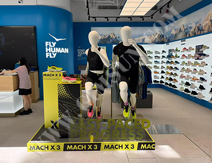 我們?yōu)榭蛻舸蛟炝艘惶讟O具動(dòng)感的店舖櫥窗展示,將品牌的速度感與活力巧妙呈現(xiàn)。整體設(shè)計(jì)採(cǎi)用醒目的亮黃色與黑色搭配,營(yíng)造強(qiáng)烈的視覺(jué)衝擊,充分傳達(dá)出品牌不斷突破與前進(jìn)的精神。無(wú)論是立體展示道具還是背景畫(huà)面,都彰顯出我們對(duì)細(xì)節(jié)的精準(zhǔn)把控與創(chuàng)意定制的獨(dú)特魅力。