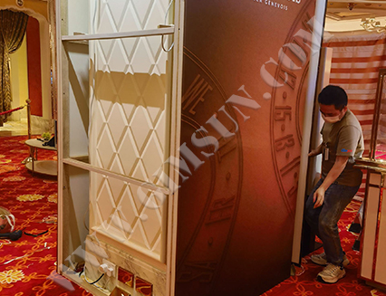 In the elegant showroom, our experienced team skillfully installed the advertising display setups. From erecting wooden frameworks to precisely positioning display cabinets, each step of the installation process demonstrates exquisite craftsmanship and precise execution, creating an exhibition space that is visually striking and highly functional.